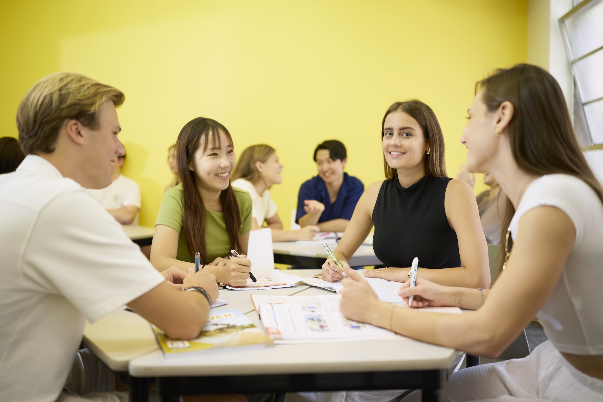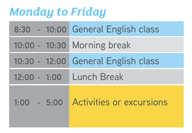 華人超少的精緻型語言學校,獨棟校園、學生國籍比例多元有來自歐洲、南美洲、亞洲和中東 15 個不同國家的 200 多名學生,學生們早上享受英語課程,下午一小時的全球公民課程,重點是透過研討會和計畫來提高學生的語言技能,培養他們的團隊合作、領導力和跨文化溝通能力。