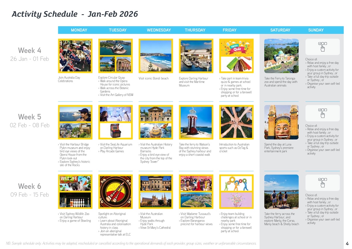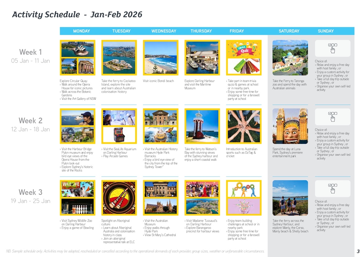 雪梨活動最豐富的遊學課程。