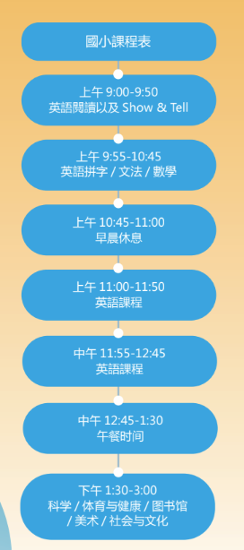 課程設計專注於英語語言教學,以及數學、科學、HAAS、藝術和體育與健康等科目。 本校也非常注重課堂行為規範的引導,我校將語言、文化教學和課堂參與納入澳洲小學課堂常規和規範中,提前讓同學們適應澳洲小學的課堂。 每個單元都有不同的澳洲文化主題,為語言學習提供額外的內容,為學生融入當地校園生活做好鋪墊。