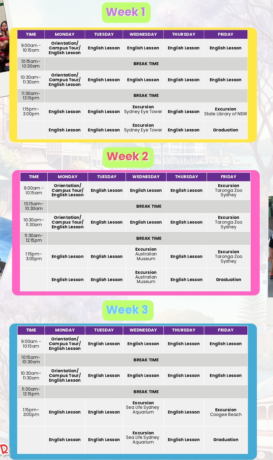 這家語言學校是專門做中小學英文的課程,在學術教學上有強烈優勢,未來若有長期規劃留學的學生,可以先趁假期參加短期遊學課程,體驗在澳洲上課的感覺。學校能依照學生的程度、年齡及興趣進行設計課程,靈活多元,滿足各種需求!