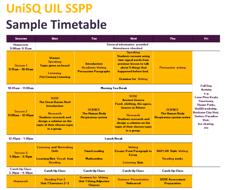 UIL(University of Southern Queensland Language Institute)最早以 未成年學生英語課程與遊學團 為主,擁有超過 20 年辦學經驗,學生來自中國、台灣、香港、印尼、韓國、日本等地。 原為獨立私立學校,在疫情期間併入南昆士蘭大學(UniSQ),現為 UniSQ 的附屬語言中心,除青少年英語課程外,也提供 成人學術英文與大學銜接課程。