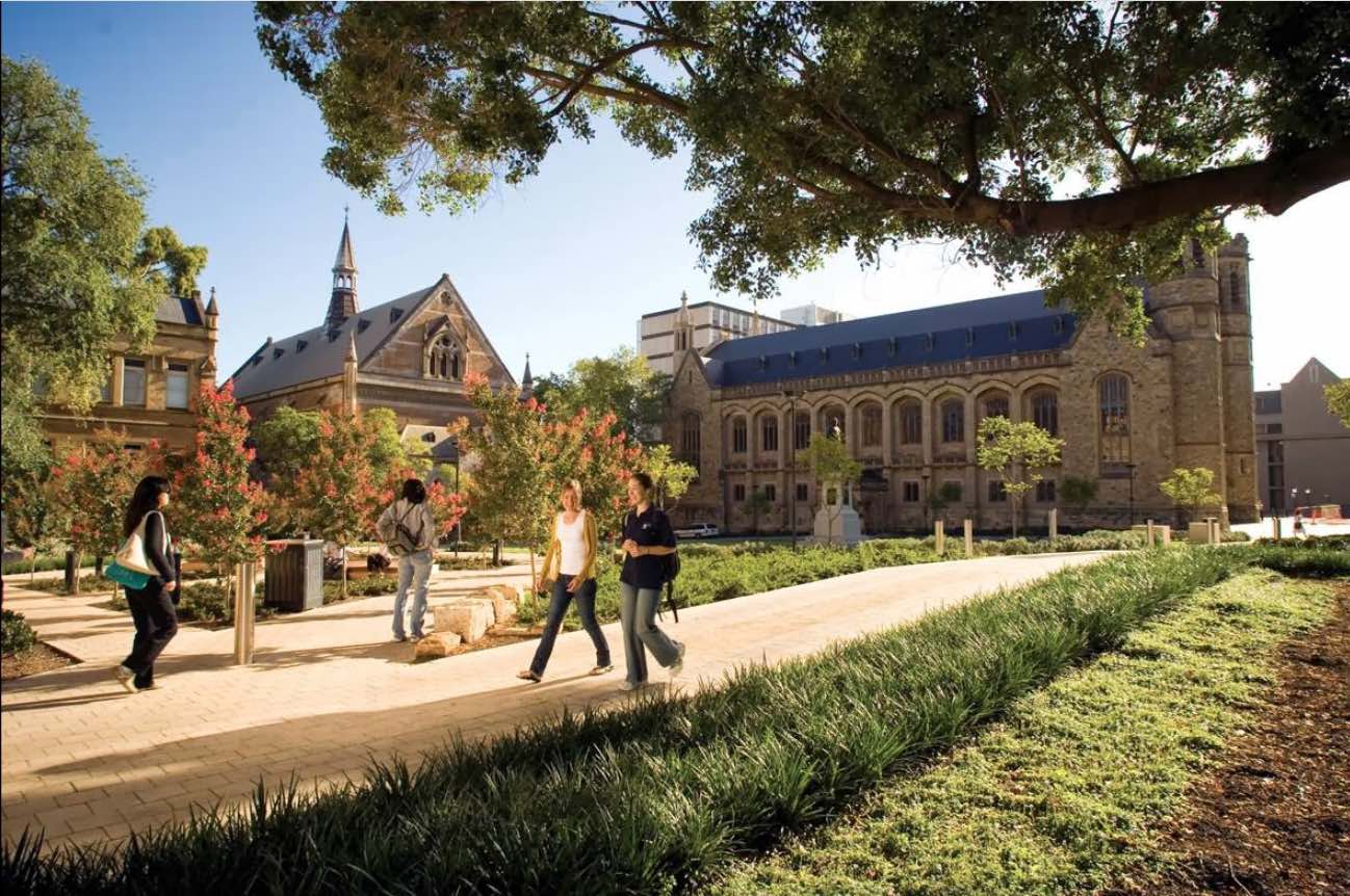 阿德雷得大學創立於1874年,為澳洲八大名校聯盟成員之一,也是歷史悠久的砂岩學府之一,一直是澳洲最具歷史、代表性和實力的頂尖研究型學府之一。目前有4個澳洲校區、一個新加坡校區,和一個紅酒研究中心。主校區位於阿德雷德市中心,是規模最大的校區。North Terrace校區生活機能完善,無論是購物、交通都十分方便。目前,阿德雷得大學已經和全球25個國家和地區的138所大學,建立了學術合作關係。