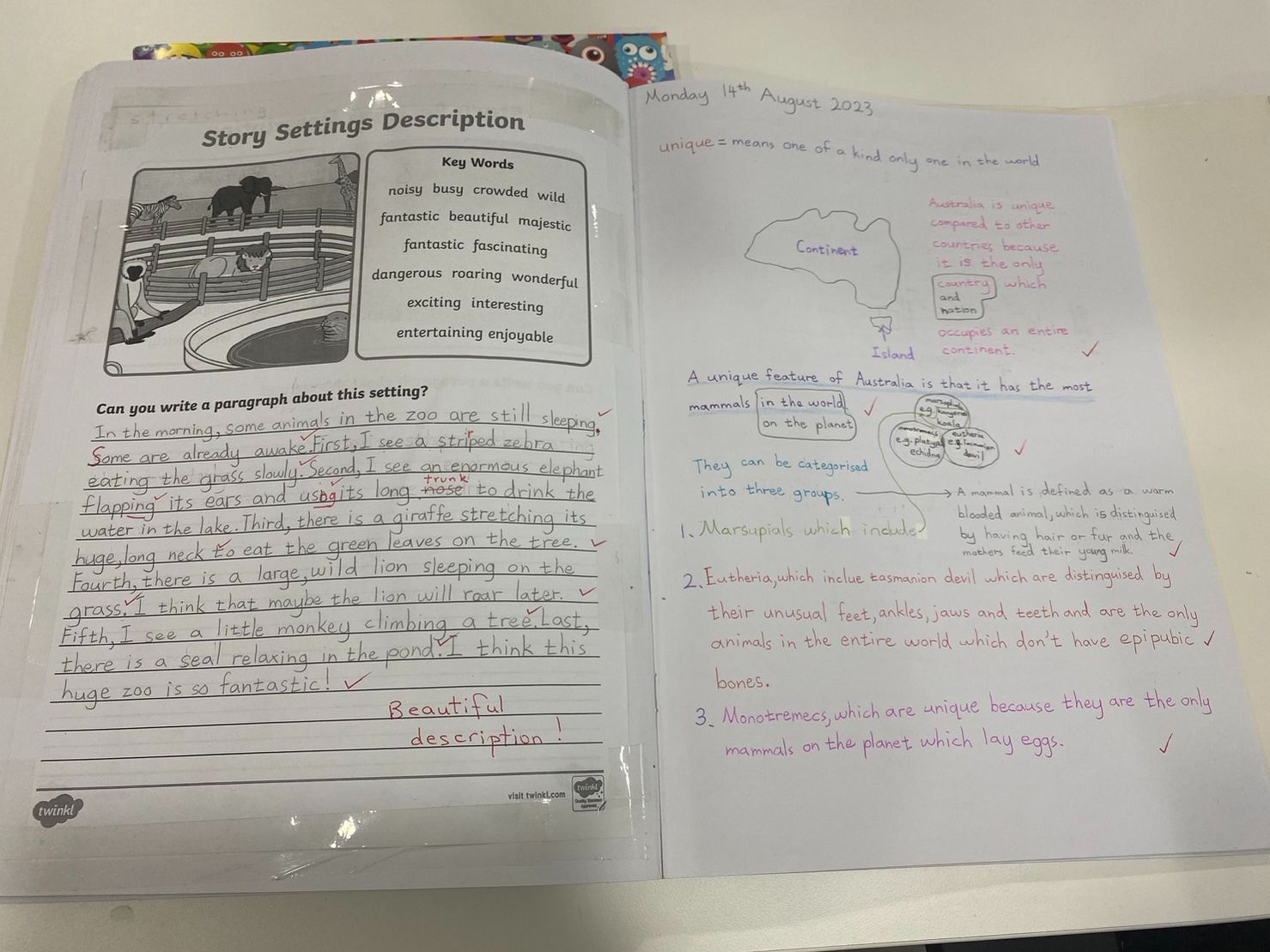 所以這一次,我們決定報讀小學預備課程,上課內容比較多一些,課程中許多發表和創作,比較趨近於澳洲小學的內容。