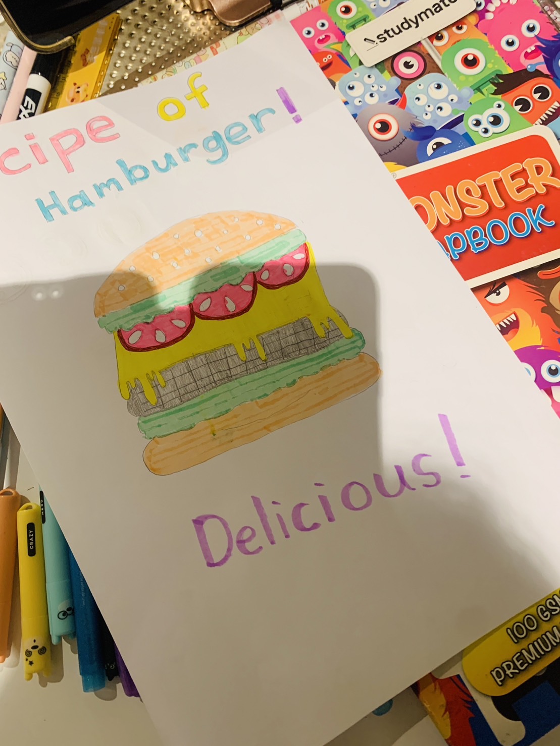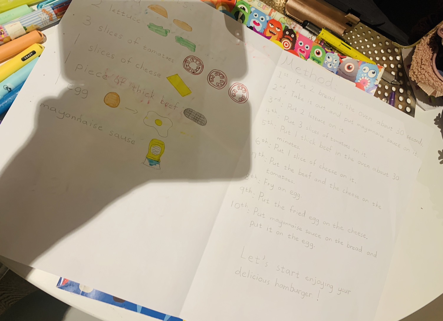 或是某一天的作業是要製作一個食譜,隔天呈現給同學們看和介紹。 都是這一些融合各種不同能力的作業,Joanne也都做得很開心。媽媽也覺得很有趣。