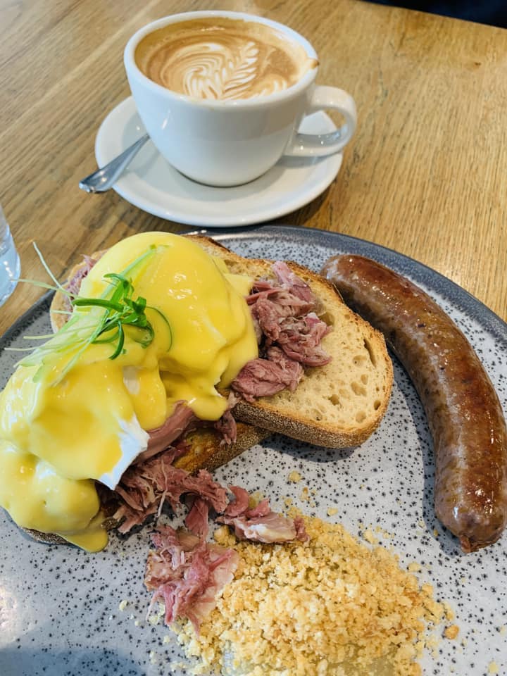 (班尼迪克蛋真的好好吃,肉腸會爆汁,咖啡也好好喝)