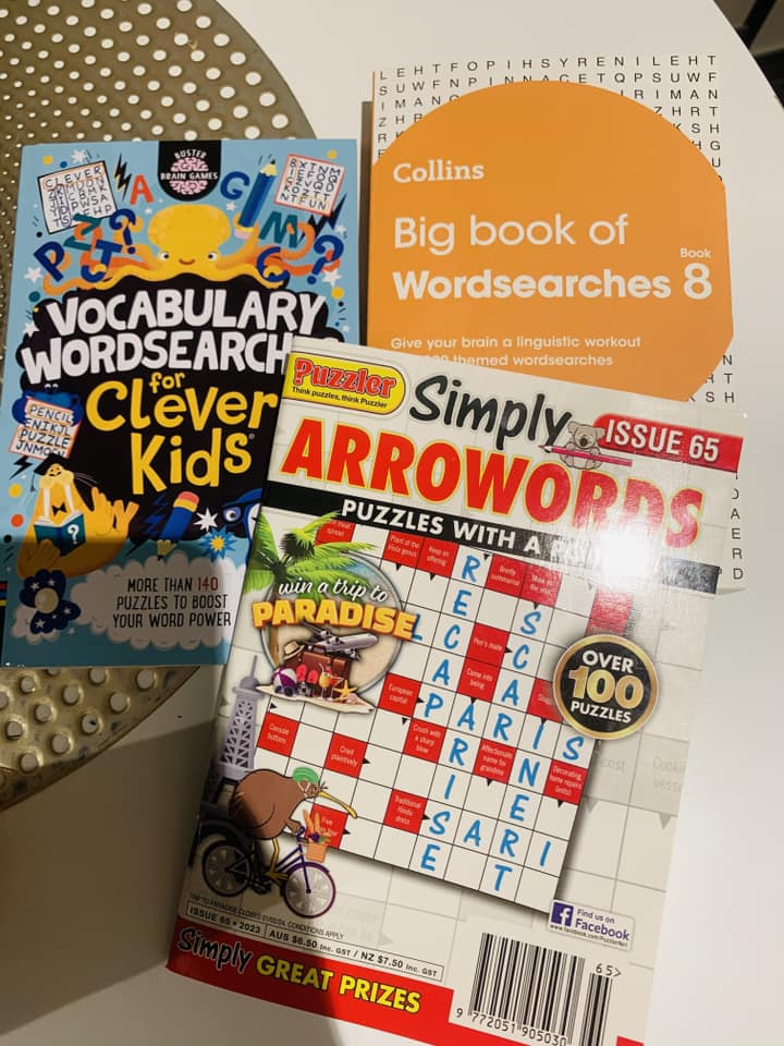 (書報攤很常販售這樣拼字遊戲的小書,我們會買來讓Joanne做著玩,他也很有興趣)