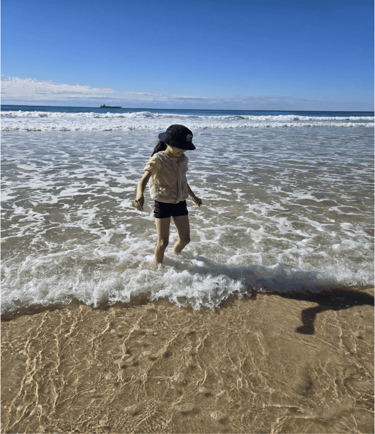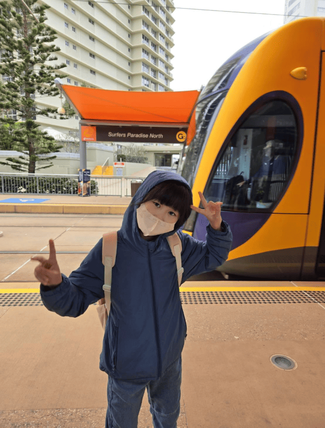 住宿方面,我們住在距離學校三站輕軌的海邊公寓。在黃金海岸的兩週,感覺就像真正融入當地生活一樣:每天早晨看著太陽從海平面升起,一邊準備早餐,一邊帶孩子搭輕軌上學;採買食材、煮飯、接送孩子。生活日常與台灣相似,但背景卻換成了悠閒愜意的海邊美景,讓整個氛圍更加自在。週末,我們也會自由安排,到海邊或衝浪者天堂探索、遊玩。