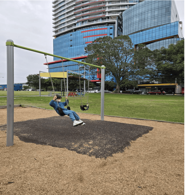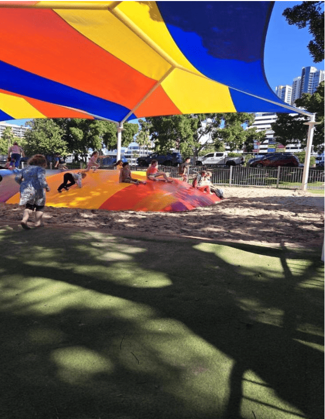 大公園好好玩!這是澳洲兒童 Playground 很常見的 Air jumping pillow 彈跳床。