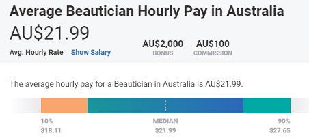 在澳洲職場,讀完美容課程後,可以用Beautician, Beauty advisor, Beauty therapist, Spa therapist, Salon manager等關鍵字尋找工作。依職涯發展與前景網站Payscale的統計,普通的Beautician的薪資水平為平均時薪$21.99澳幣。