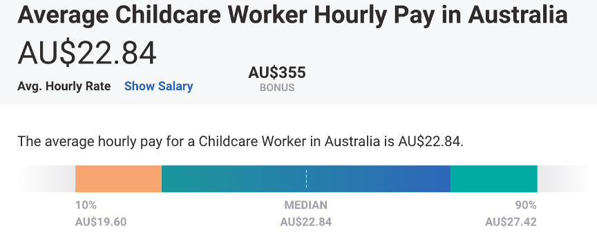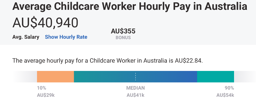 一般幼教中心員工平均時薪有澳幣A$22.84,資深經理年薪則上看澳幣A$58,000 !