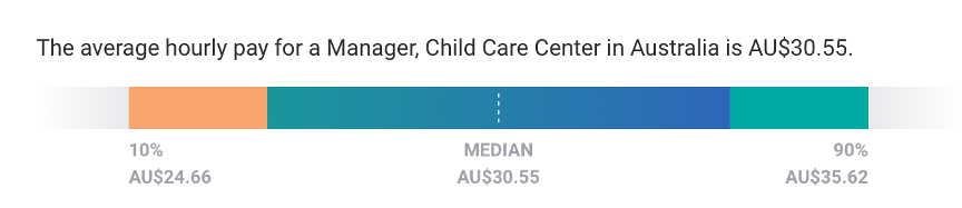 以時薪計算,幼教中心經理的時薪落在👉時薪澳幣$24.66~35.62 之間。