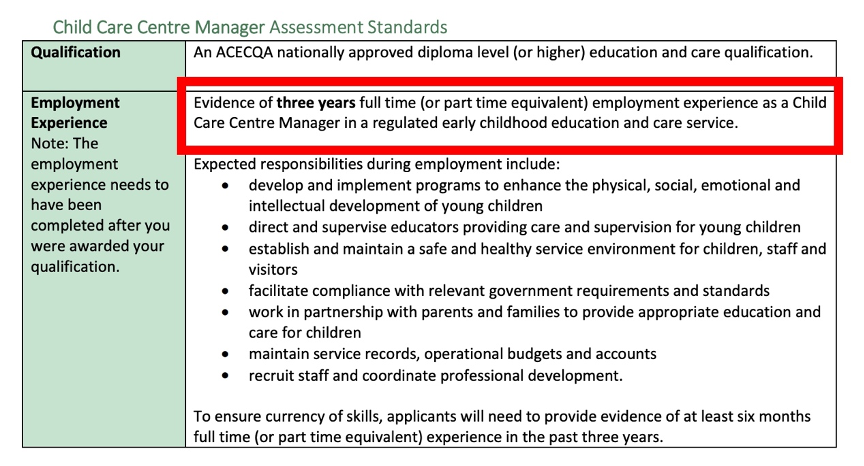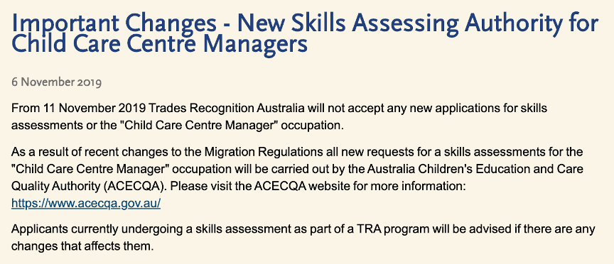 幼教中心經理這個項目的職業評估機構在2019年底由TRA 改為ACECQA ,其認可的學位如下: