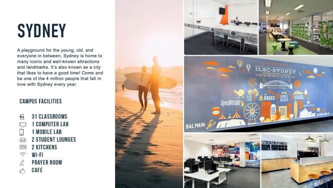 ILSC語言學校從加拿大起家,目前在全球已有8間分校,加拿大3所、印度1所,而目前我們推薦給你的澳洲也有4所!想去澳洲學習的你,就有多個不同地點選擇,這幾間分校分別位於雪梨、墨爾本、布里斯本和阿得雷德。(ILSC目前也計畫在伯斯開新的分校喔!)