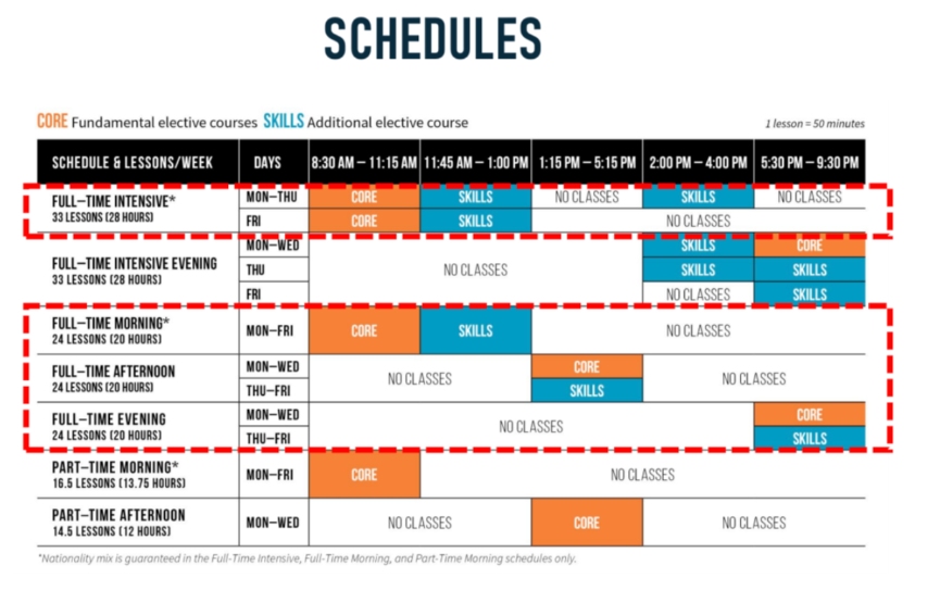 ILSC的語言課程提供了早午晚三個時段,課表非常彈性,對於想打工的學生而言,可以選擇工作以外的時間學習,半工半讀不衝突,學英文還可以幫自己補貼一些學費喔!