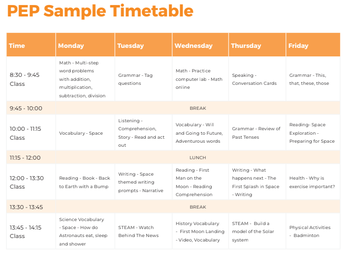 小學預備課程 (PSP) 參考課表