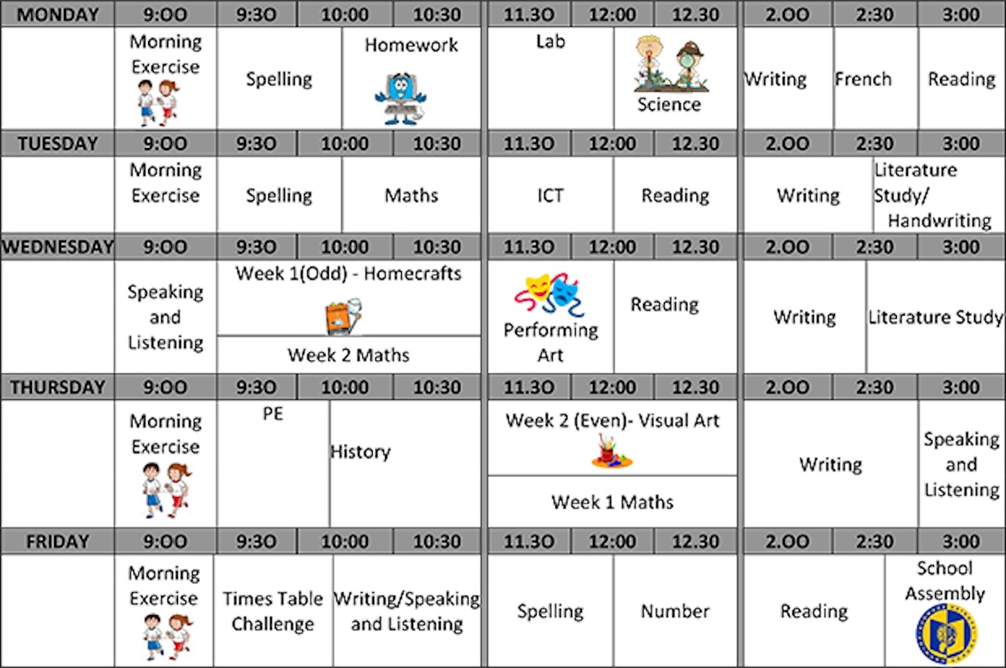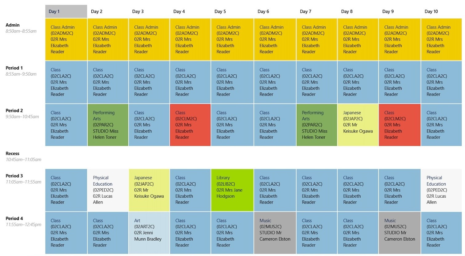 澳洲中小學參考課表