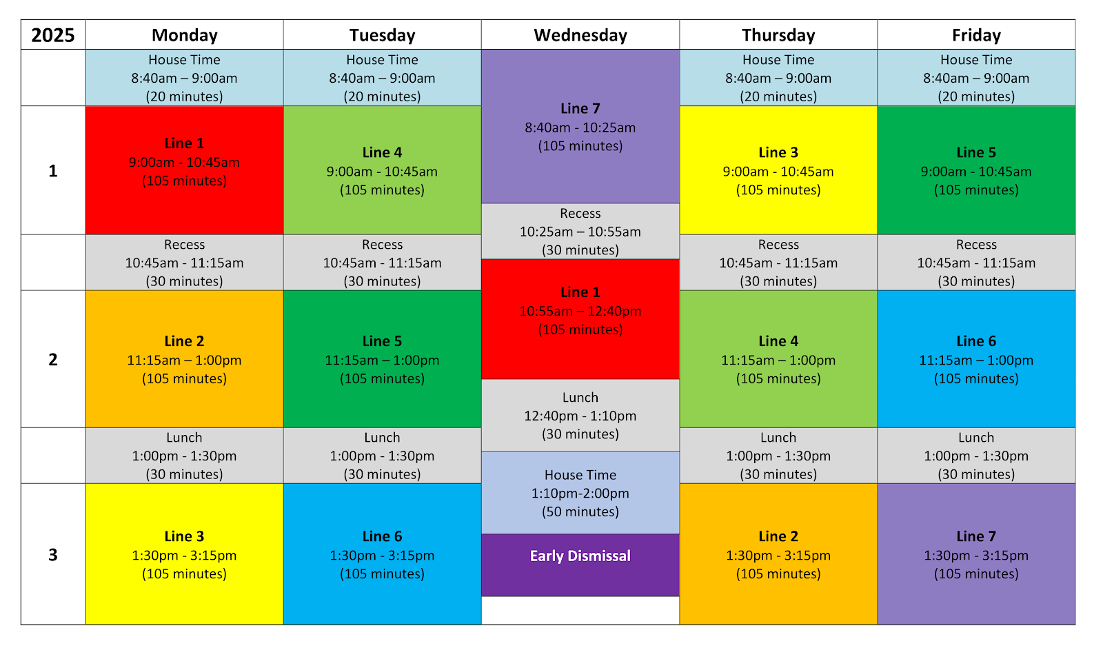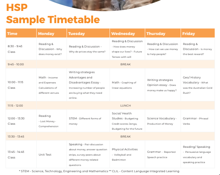 中學預備課程 (HSP) 參考課表