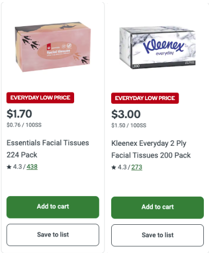 以WoolWorths為例,可以看到自有品牌只賣 AUD 1.7 塊,但是如果是他牌大廠,像是 Kleenex,竟然要 AUD 3 塊!已經差了快要兩倍。