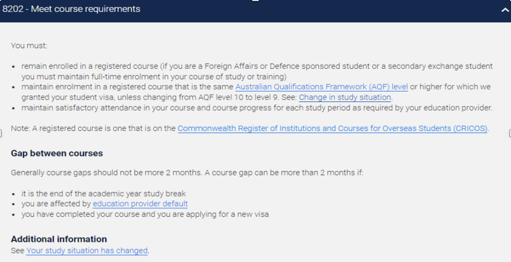 澳洲學生簽證8202條款:滿足課程要求。留學生能否降級讀書?不同課程之間的空檔期能有多長時間間隔?