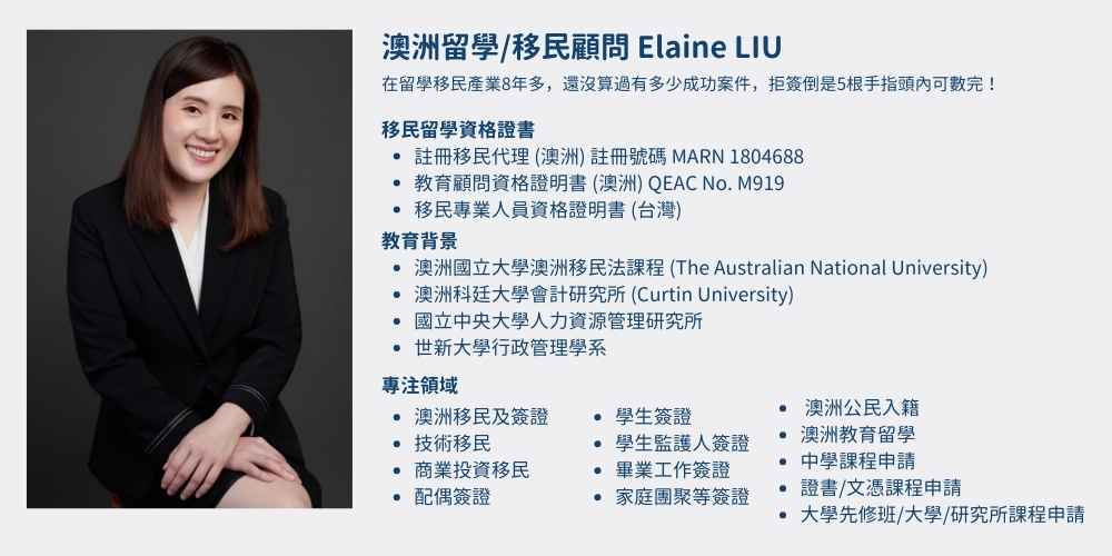 免責聲明:本文僅供參考和教育用途,並不會構成任何的移民法規意見。請依照現行澳洲移民法規規定為準