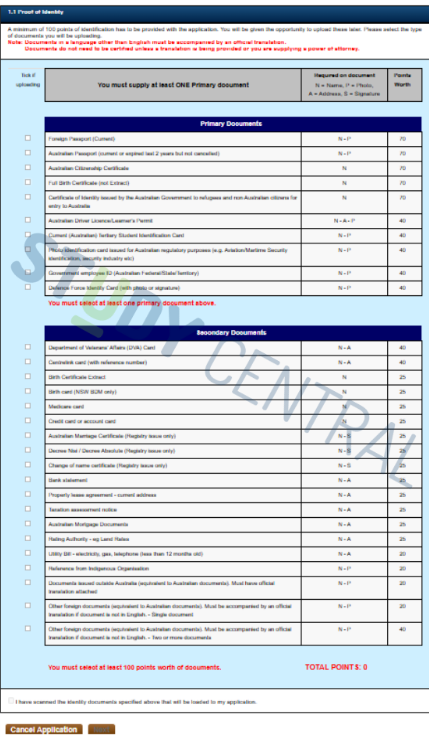 主要文件中至少必選一項,持有本國或是澳洲護照可以輕鬆入手70分。很多人會選擇搭配澳洲駕照就能夠兩項文件突破100分的門檻。若是持有有效的高等教育學生證也可以搭配護照。