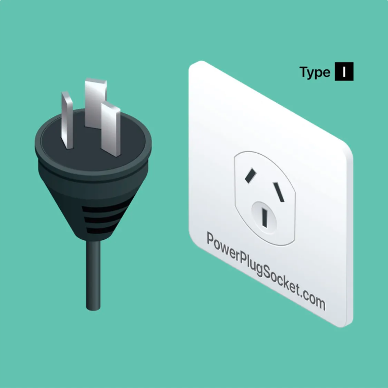 澳洲的電壓為 220V~240V,使用 TYPE I(倒置 Y 字型)插頭;台灣則是 110V,使用 TYPE A(兩腳扁平插腳) 或 TYPE B(兩扁平插腳+一圓形接地針) 插頭。
