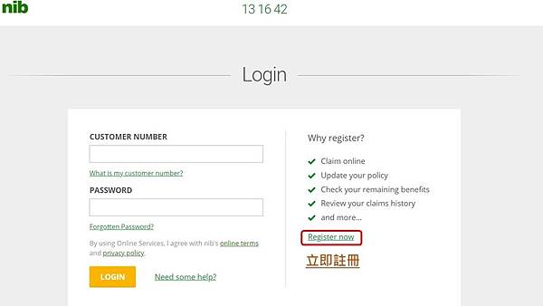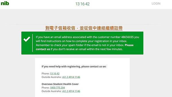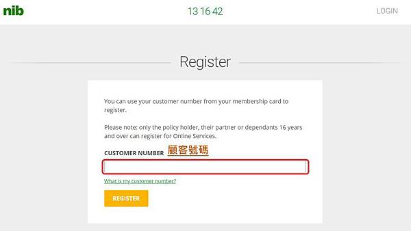 註冊頁面中customer number請填入confirmation of health cover(保險確認信)的policy number。
