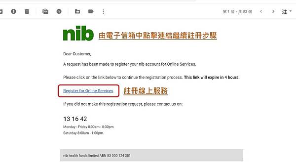 到信箱中點開nib寄來的信,點選註冊線上服務