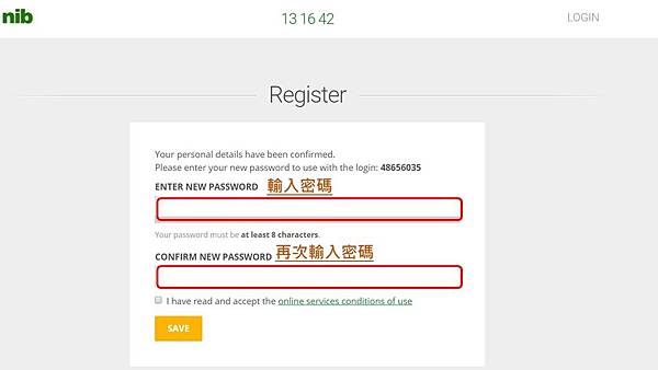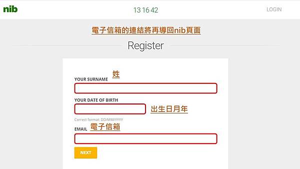 電子信箱的連結再導回nib頁面,填寫個人資料及nib的密碼。