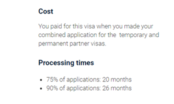 目前澳洲官方給出的801 PR簽證審理時間和申請費用: